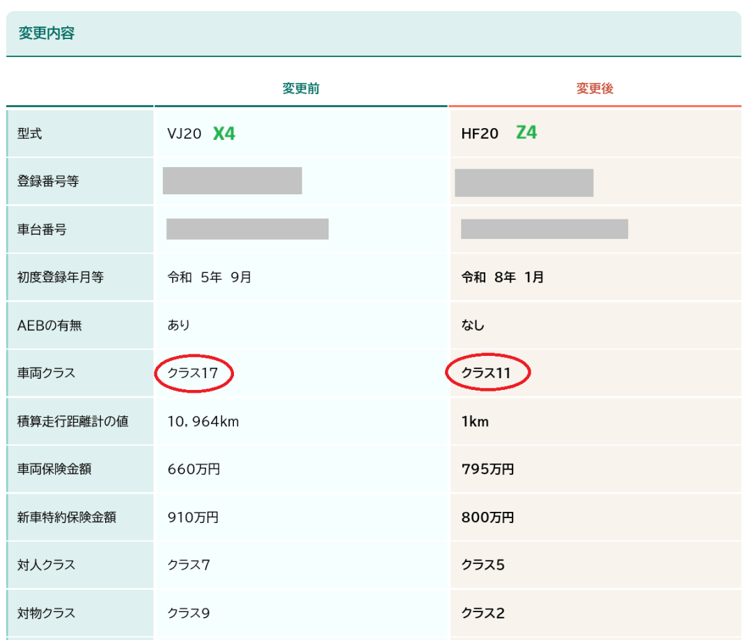 特に車両クラスの17:11が保険料に大きく影響するとのこと。