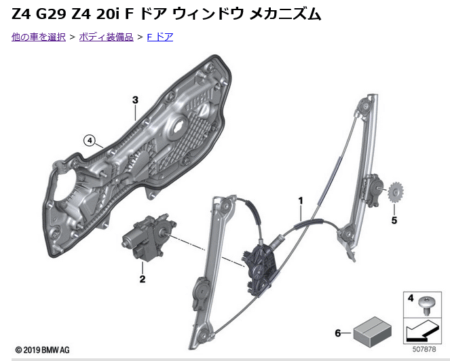 今回いろいろ調べたついでにZ4 G29のパワーウインドウレギュレーターの価格を調べてみました。
