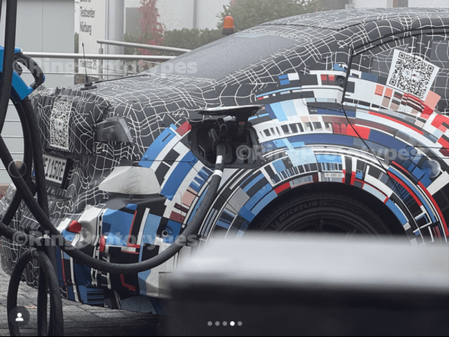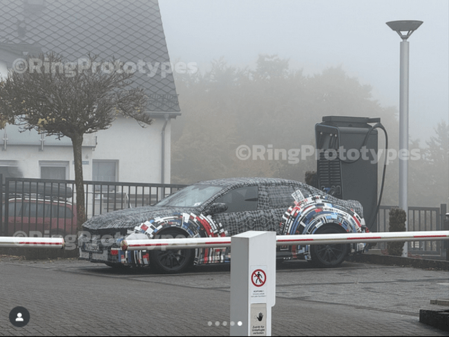 ニュルブルクリンク近郊のBMW Mテスト拠点で、完全電動のEV版BMW M3「ZA0」が充電テスト中に撮影されました。