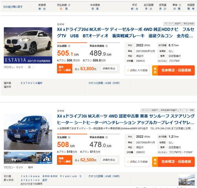BMW X4 G02 中古車 年式で悩むなら、まずこのレンジを基準に相場を見ると判断しやすくなります。